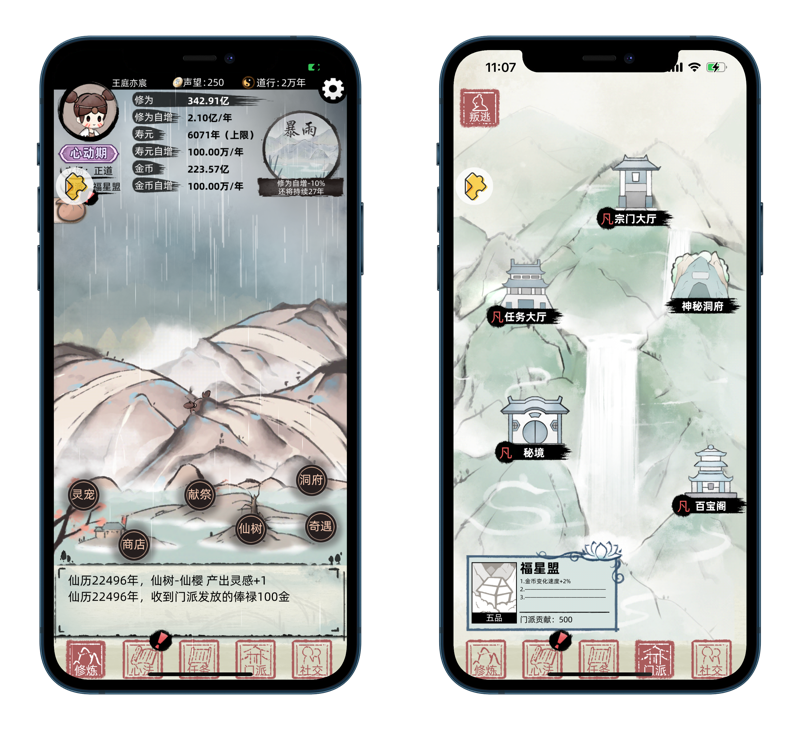 不一样修仙1的诞生非常意外, 很意外的收到不少仙友的喜欢 …但由于水平有限游戏有各种问题, 尝试修了很久发现问题越修越多, …程序员后来被锤死了, 现在他已经转生到二重天, 于是有了我们的修仙2