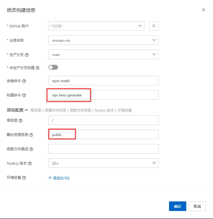 • 构建命令 npx hexo generate